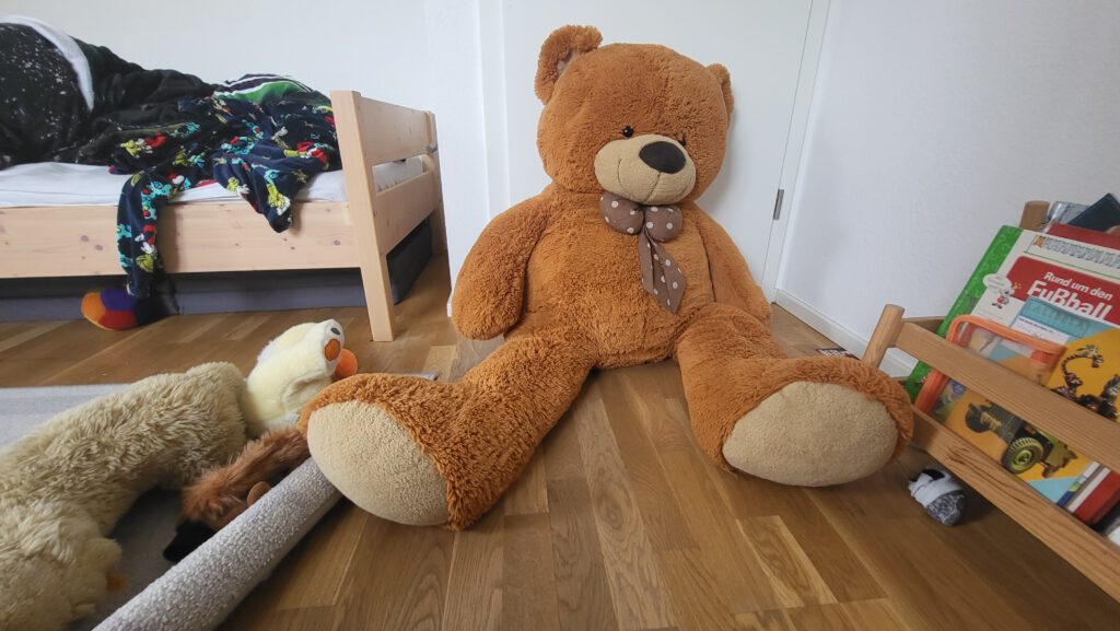 Also, wenn ihr mal einen gemütlichen, aber trotzdem super starken Kuschelfreund braucht, dann kommt zu mir – Big Bär, der Donutliebhaber und Kuscheltieraufpasser!
