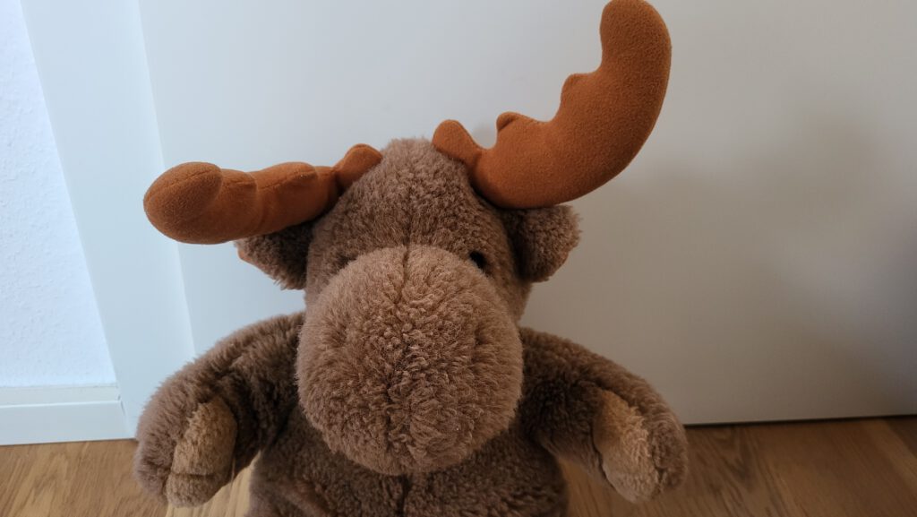 Ich war so froh, endlich raus aus dem Schaufenster zu sein und die frische Luft zu genießen. Aber als ich draußen war, merkte ich schnell, dass es ziemlich einsam war. Ich lief durch die Straßen, ohne zu wissen, wohin ich sollte. Doch plötzlich hörte ich aus der Ferne ein lautes „Elchhhhh!“ und als ich näher kam, hörte ich auch das Klackern von Geweihen. Es waren Paule und Timi! Zwei andere Elche, die auf dem Spielplatz Elchball spielten.